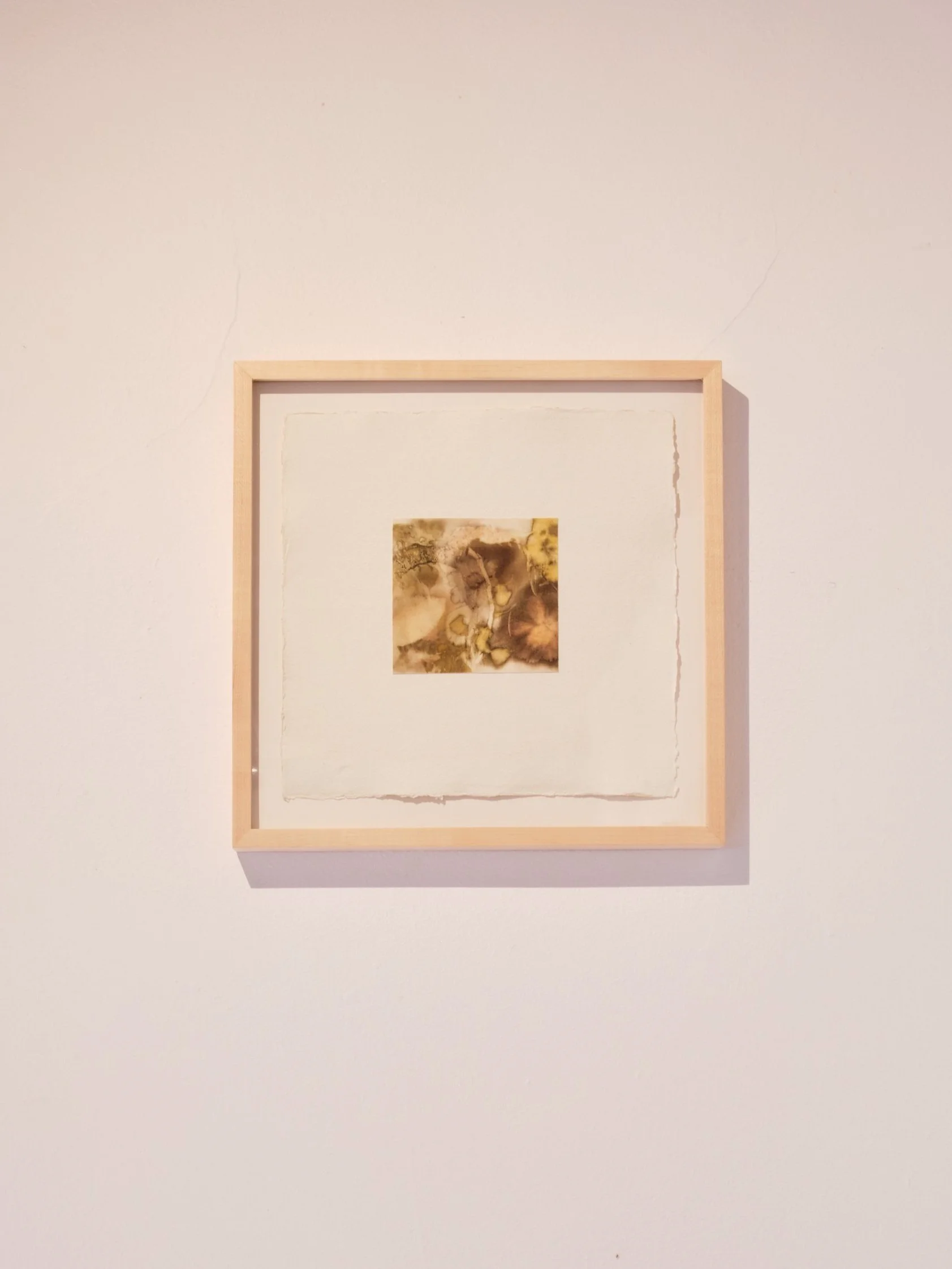 Natural pigment from homegrown flowers on silk, mounted on khadi handmade cotton rag paper