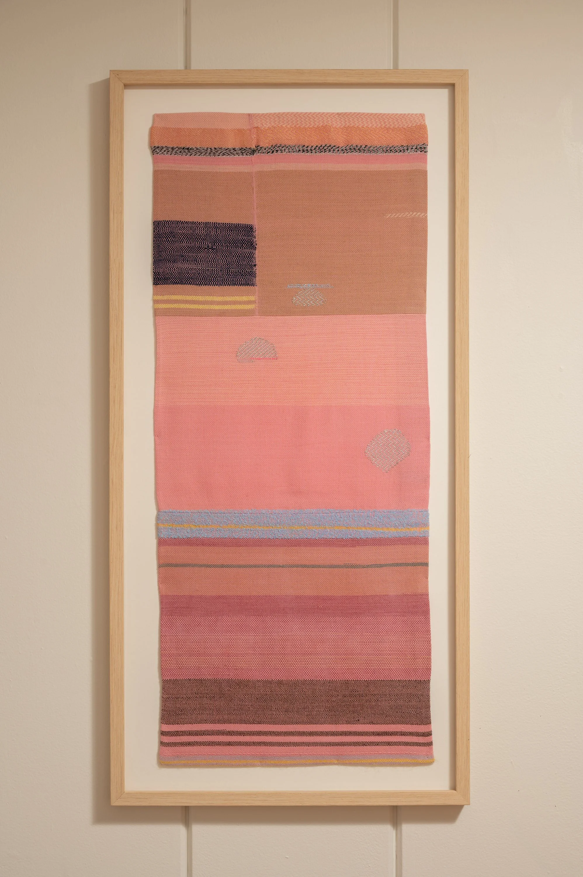 Annie Millican is a textile artist and designer who lives between Sedona, AZ and Providence, RI. Her work touches on themes of play, whimsy, and peace. She experiments with natural dyes and natural and synthetic yarns to explore the happy accidents that occur when materials interact on the woven grid. She studied at the Rhode Island School of Design. Her new body of work is made from natural dyes created in collaboration with artisan Olga Reiche in Guatemala, and vintage metallic yarns sourced from historic trim shops in Paris; the pieces are slow-going meditations on the natural cycles of healing.
