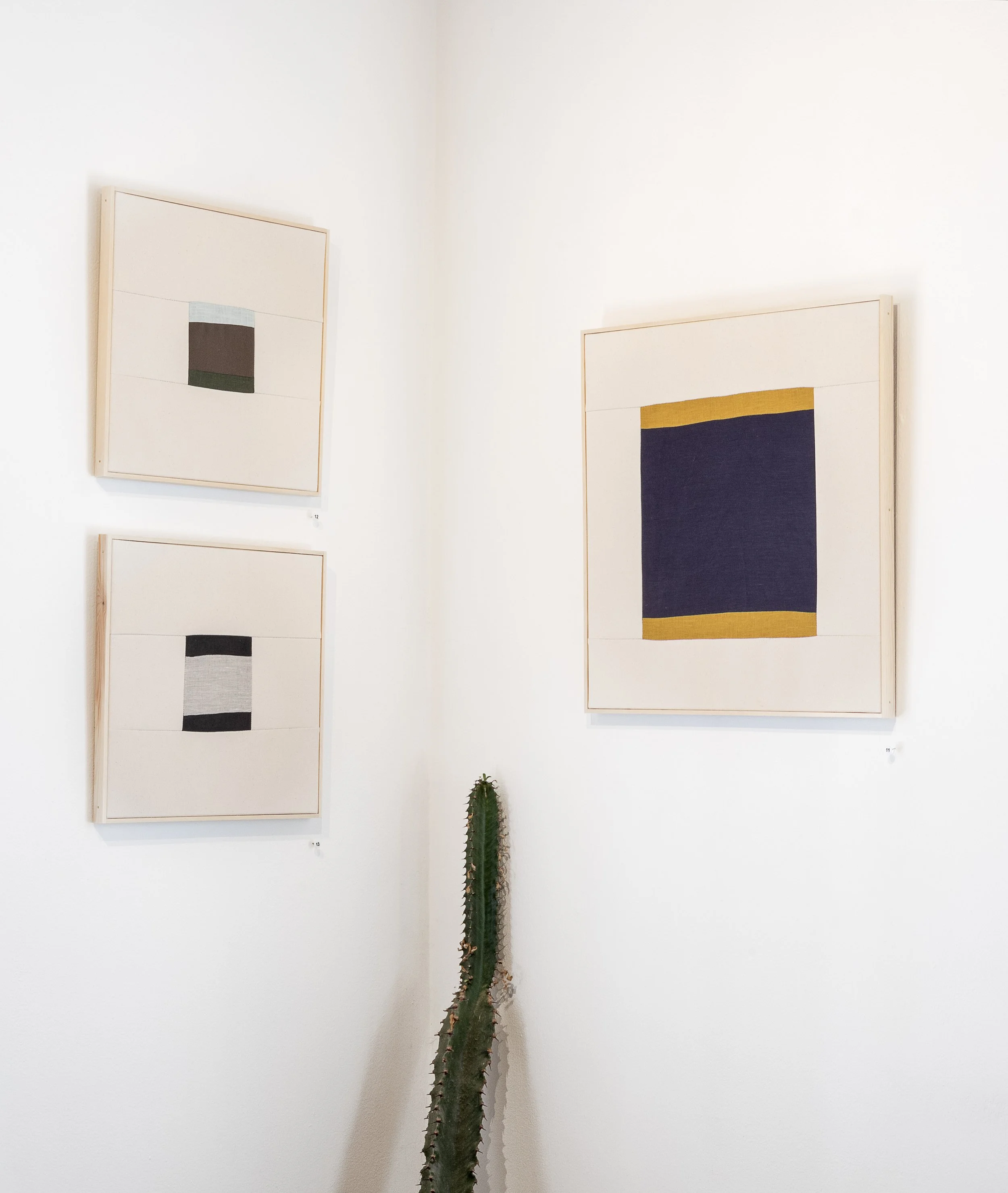 Emelie Richardson’s handwoven works blur the boundaries of traditional craft and painting. In Emelie’s handwoven paintings, chance and improvisation have become integral elements to the laborious process of weaving, in which fluid line and form cannot be easily controlled. Allowing the materials to play a large role in informing the work, Emelie highlights spontaneous subtle shifts in surface texture and tonality. Emelie currently lives and works in Chimayo, New Mexico.